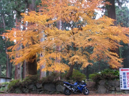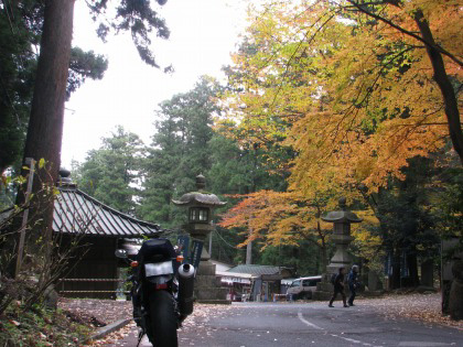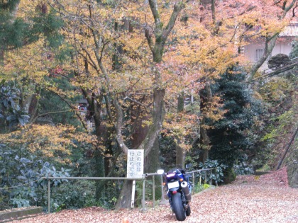 10:56 大雄山最乗寺 仁王門のある広域農道から2km強、大雄山最乗寺まできました。 路面は一面落ち葉の絨毯。 ここから先は、車両通行止めで、行き止まり。 境内へは、徒歩で行くことになります。 昼も近くなりお腹も空いてきたので、バイクを下りずに、ここでUターンします。 自分自身、特定の宗教に帰依していませんが、寺や神社、教会など宗教への信仰の結果として創られる大きな建造物には驚嘆を感じることが多々あります。 |