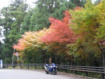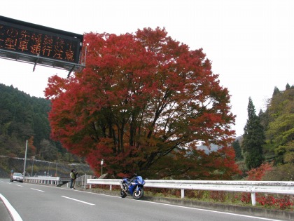 10:46 南足柄広域農道で 西湘バイパスを小田原ICで下りて、小田原厚木道路の荻窪ICの出口を通過して、南足柄広域農道まできました。 南関東に位置し温暖な気候の足柄でも紅葉が始まっていました。 |