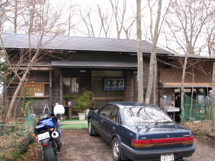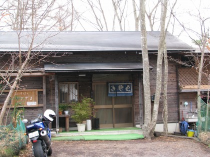 12:00 昼食は ちょうどお昼になりました。 今日のツーリングの1個目の目的地、山中湖にほど近い、平野にある、”趣味のそば すぎやま”に到着しました。 このHPの記録を見ると、約1年ぶりの訪問になります。 さっそく、中に入ってみることにします。 |