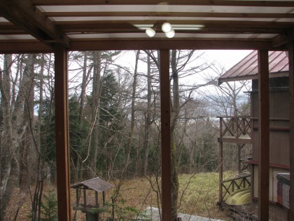 12:02 窓の外は 窓の外は、落葉した雑木林の樹間から山中湖を見ることができます。 すぎやまのご主人に聞いたところ、今年は既に1回雪が降ったとのことでした。 |