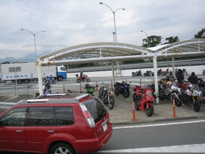 10:28 西湘パーキング 自宅を出発して、小一時間、西湘バイパスの西湘パーキングに到着しました。(これも毎度だ。端折っても良いんだけど、習慣みたいなもんだ) 天候がイマイチにもかかわらず、予想以上にツーリングバイク多いですね。 |