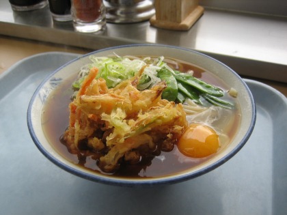 10:34 遅い朝食 起きた時間が遅かったので、、時間が勿体なく、ここまで何も口にしませんでした。 お腹が空いたので、ここで遅い朝食を食べます。 食べたのは”天玉うどん”。 すっかり、馴染みになった冷凍うどんを使っているので、うどん自身は腰があって悪くないです。 でも、この時間に、朝食なんて食べちゃったのを後で後悔するんだねぇ。 |