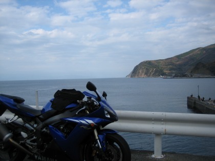 12:19 土肥から 土肥の市街地を抜け、西伊豆の海沿いの道を松崎に向けて走ります。 西伊豆の海岸を、南下すると、海は右手に見えるはず? 写真を撮るため、バイクをわざわざUターン。 |