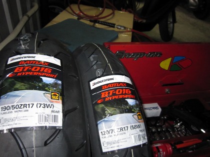 18:29 ブランニューのタイヤは 今度交換するタイヤは、ブリヂストンのBTー016にしました。 BTー016は、BT-003STREETの次にグリップ重視のタイヤです。 ターゲットとしては、メインにワインディングロード。ときどきサーキットのスポーツ走行も可。と言ったところでしょうか。 |