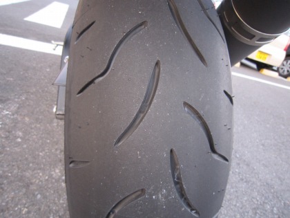 17:10 そのグリップ感なしも、高速に上がり、一度タイヤが暖まってしまえば、消滅。 良い具合にグリップします。 話は逸れますが、CBRでサーキット走行をするときは、BT-003を履いています。 BT-003はちゃんと乗りこなせれば、強大なグリップ力を発揮するそうです。 乗りこなすためには、コーナーリングのときにタイヤを潰す。 そう、トラクションを上げるために、面圧を上げてタイヤを変形させてやると強大なグリップ力を発揮するそうです。 地方戦を走っているライダーでも、その能力を十分に発揮できていないらしく、ましてや自分なんかは、全然。 ただ、走るときに、面圧を上げてタイヤを潰すことを意識しては、走っていました。 なんで、そんな話を書くかと言うと、このタイヤ、面白いように潰れます。 もちろん、エアーはちゃんと入ってますよ。 コーナーリングの時に、タイヤが変形してグリップするのが、よく分かります。 BT-003は、エンドグリップを最優先にしたがために、乗りこなさなければ、最高のパフォーマンスを引き出せない(自分には)難しいタイヤになっています。 けれど、このBT-016は、エンドグリップを最優先にしなくて良いのと、一般道を走ることが前提なので、設定荷重が003より低めみたいです。 エンドグリップを求めない替わりに、その余裕分をグリップ感に向けているように感じます。 グリップ感がわかりやすく、ニュートラルなハンドリングです。 BT-003STは、わだちなどで少々神経質に反応するところがありましたが、BT-016は神経質な所もなく、かと言ってダルなところもなく、高速域まで、同じキャラクターを保ち続けます。 冬場の、しかも一般道の高速道路なので、200キロ以上の高速域や、タイヤの端まで使ったエンドグリップを確認することは出来ませんが、一般道を走るには、BT-003STよりわかりやすく、快適だと思いますね。 |