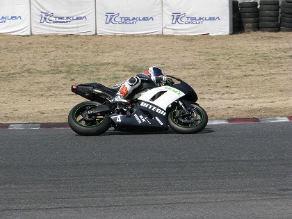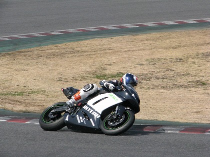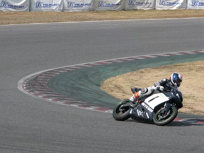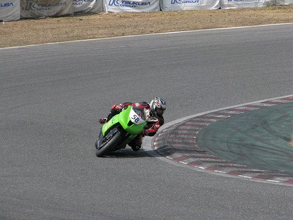 11:50 後半になると 後半になると、周りのペースにも引きずられて、ペースも上がってきました。 マシンにも慣れてきて、バイクも寝るようになってきました。 前半の上の写真と大きく違います。 |