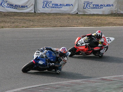 14:56 好敵手 決勝がスタートしたら、1ヘアピンへ移動。 鈴鹿で、レース中に場所を移動とかしていたらレースが終わっちゃいます。 コースが狭い筑波ならではのメリットです。 10番グリッドからスタートした、FUJIhide選手。 スタート良く飛び出し、2番手集団へ。 FUJIhide選手は現在4番手、前を行く3番手の藤原選手を追いかけます。 |