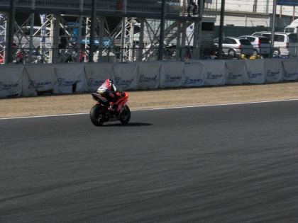 13:42 パドックに帰還 6位より下位は表彰がないので、そのままパドックに戻ります。 昨シーズンの最終戦は表彰台に上がっているので、表彰台を逃したのは去年の夏以来、悔しそう! レースは難しいですね。 リザルトは、1位~5位までが、すべてR6とピレリタイヤを履いていると言うパッケージでした。 この組み合わせは、今年は台風の目になりそうですが、他のメーカーにも是非頑張って欲しいなぁ。 |