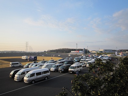6:06 ぞくぞくと 國川選手のテントには6時集合! でしたが、少し遅れ気味。 (-_-;) オーバルコースには、ぞくぞくとスタッフの車がやってきます。 |
