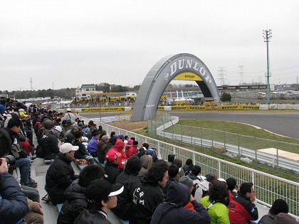 13:55 MCコーナーへ ピットを後にして、観戦ポイントのMCコーナーに移動。 1ヘアピンは観戦ポイントして好きなんですが混んでいます。 MCコーナーは、右から左への切り返し、そして2ヘアピンへ向けての左にバンクしながらのフル加速とマシンのセッティングがよく分かります。しかも、意外に席に余裕があって、なかなか良い観戦ポイントです。 |