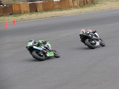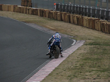 14:35 追走 2位の桜井ホンダの亀谷選手。 アウト側ゼブラゾーンに載っても、アクセルを緩めることなく、トップの高橋選手を追い続けます。 あそこのゼブラは結構凸凹しているんですよね。 乗っかると、結構怖いんですが・・・・(^^;) |