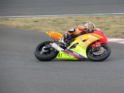 14:17 宇井選手 こちらは、ゼッケン#41番の宇井陽一選手。(よういち→41です) 宇井選手は、昨年の250ccクラスのチャンピオン。 250ccクラスからのコンバートです。 ST600どこが違うかと言うと、ST600は市販車を改造したバイク。対 して、GP-2はフレームをレース専用。 タイヤはST600が市販の溝着きタイヤに対して、GP-2は溝のないスリックタイヤ。 エンジンは・・・・・・細かいことは分かりません。ぐらいの知識レベルしか自分はありません。 ちなみに、世界グランプリのMoto2クラスは、ホンダが供給する600ccのエンジンのワンメイクですが、全日本のGP-2はエンジンはワンメイクではありません。この宇井選手はヤマハのエンジン、先ほどの小西選手はホンダのエンジンを使っています。 このあたりは、全日本のGP-2クラスをわかりにくくしているかもしれませんね。 |