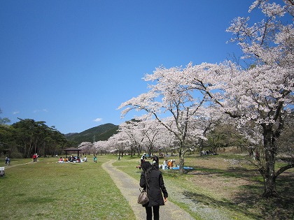 12:43 桜公園で 大笹牧場を後にし、県道245号線を下り、今市方面を目指します。 県道の途中にあった桜公園でちょっと休憩。ちょっと花見。 県道245号線に沿って流れる小百川の河川敷が桜公園として、桜の木が植えられています。 この桜が今ちょうど、満開。 たくさんの地元の人が、バーベキューをしながら花見を楽しんでいました。 自分たちも、今年は特に花見に行かなかったので、軽く散歩をしながら花見を楽しみました。 |