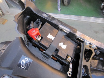 17:27 まずはバッテリー まずは、バッテリーから。 転倒後、ケーブルは外しておきましたが、ほぼ8カ月放置していたので、けっこう自然放電してます。 取り外して、修理の間、充電しておきます。 |