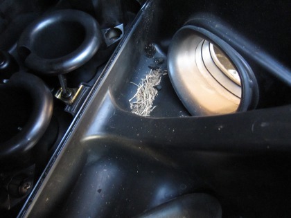 17:51 エアークリーナの前には エアークリーナの手前のエアークリーナーボックスには、芝生やタイヤカスがたくさん入っていました。(笑) エアークリーナーを付けていて良かったね。 (^^) |