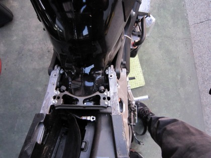 20:55 シートレール シートレールの取付をして、サイレンサーの取付が完了。 (^_^)v シートレールのブッシュ類を移植したり、サイレンサーのブラケットが曲がっているのを修正したり、バッテリの配線を取り回したりしていたら、結構時間がかかりました。 |