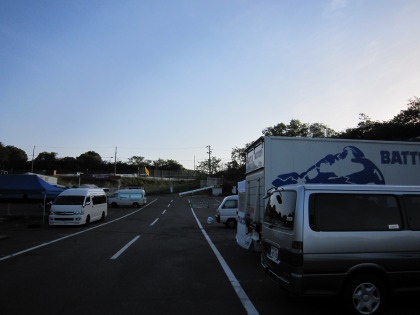 6:00 サーキットの朝は 6時ゲートオープンのハズが、6時に目が覚めたら、すでにゲートは開いていました。 明日の第2戦は、西コース。 西コースのパドックに車を駐めます。 鈴鹿サーキットの朝は、筑波サーキットに比べると、あまり早くないみたいです。 筑波サーキットのパドックは狭いので場所取りとかがあり、ゲートオープンと同時にみんな動き出しますが、鈴鹿サーキットはノンビリしています。 本コースのパドックは広いですが、西コースのパドックはそれほど広くはないんですけどね。 |