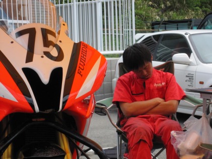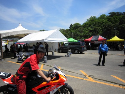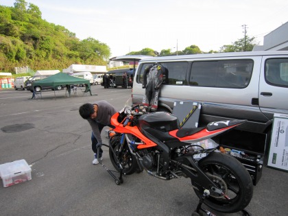 9:12 走行準備 明日のレースに向けて、特別スポーツ走行、略して”特スポ”。 1本目は9:15から。 走行の準備を始めます。 |
