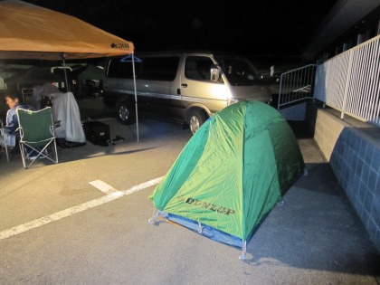21:31 設営 夕食も終わり、サーキットに戻ってきました。 自分は久し振りに、テントを引っ張り出してきて、ここで寝ます。 |