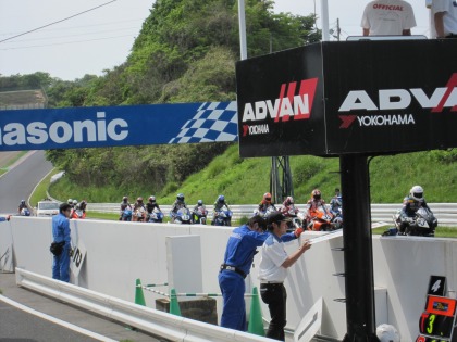 14:28 グリッドに ピットレーンからコースイン。 1周のサイティングラップを終えて、グリッドに着きます。 Fujihide選手は、6列目のアウト側からスタートです。 |