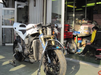 16:43 CBRを下ろして CBRをトランポから下ろして、工具やら部品やらを下ろして作業の準備。 修理始めます。 いつも、修理のスタート時間が遅すぎですね。 (^^;) |