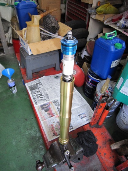 19:53 組み付け完了 フロントフォークの組み付けヶ完了しました。 フロントのイニシャルも、左と同じに合わせておきます。 もう、8時になってしまいました。 まだまだやることが一杯あります。 (*_*) |