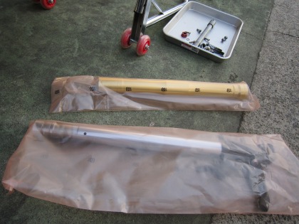 17:35 新品 新品のフロントフォーク、インナーとアウター。 前回に引き続き、約4諭吉さま。 (>_<) すでに、へそくりは壊滅状態!(爆) |