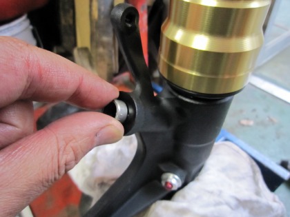 18:17 忘れないうちに インナーフォークの下端あるダンパーのコンプレッションアジャスター。 今回、インターが新品になっているので、忘れないうちに、古いインナーと同じセッティングに合わせておきます。 |