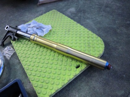 18:51 組み立て完了 フロントフォークの組立が完了。 さっさと、組み付けちゃいます。 |