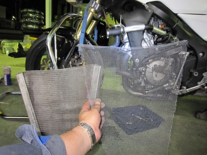 21:10 忘れてました! まだまだ、続きます。 前回取り付けたラジエータですが、ガードのネットを取り付けるのを忘れていました。 |