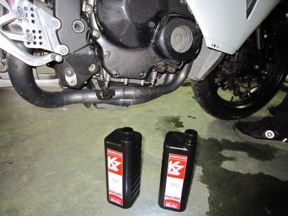 22:34 オイル交換完了 オイルは、毎度のHiroko(広島鉱潤)のレーシングオイル。 約2.5リットル。 交換完了。 |