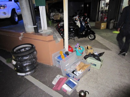 1:15 まだまだ CBRは積み込みましたが、まだまだパーツやら、タイヤやら工具が残っています。 体にむち打って、片付けをします。 |
