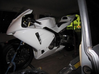 1:17 撤収 あとは、スパタイヤやら工具を積み込むだけ。 これで、一応CBRは走れるようになりました。 18日の火曜日はエビスサーキットで走行会です。 久し振りにサーキット走ります。 (^_^)v それでは、ボチボチ撤収します。 追)アイスエイジさん、ふじまきさん、遅くまでありがとうございました。 m(_ _)m |