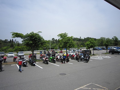 9:43 西湘パーキングに到着 集合時間に43分遅れて、湘南パーキングに到着っ! って、だれもいません。 (>_<) 今回は遅刻必至だったので、事前に携帯で連絡済。 先に行っててもらうことにしました。 とりあえず、昨晩過剰に補給した水分を抜いて、先に進みます。 |