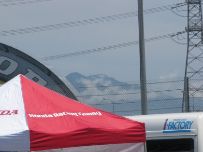 11:05 天候は回復 予選の時の豪雨がウソの様に晴れました。 筑波山にははぐれ雲がかかっていますが、筑波サーキットは快晴。 路面もドライです。 TC600の決勝は11:00から予定されていましたが、豪雨と度々の転倒による赤旗中断により、スタート進行は30分ほど遅れています。 (@_@) |