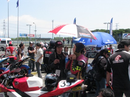 11:18 ポジション確認 パドックからピットロードに移動し、コースオープンを待ちます。 入江選手はポジションを確認。 人それぞれ、集中していくプロセスは異なる。 |