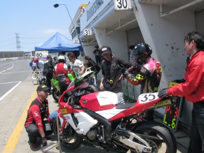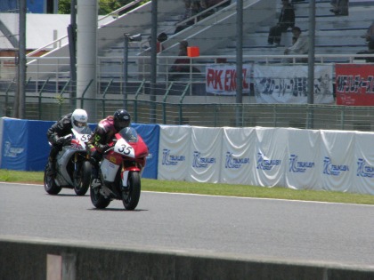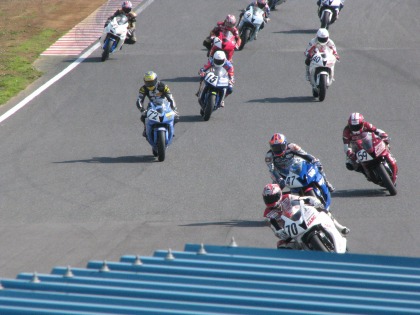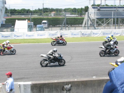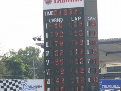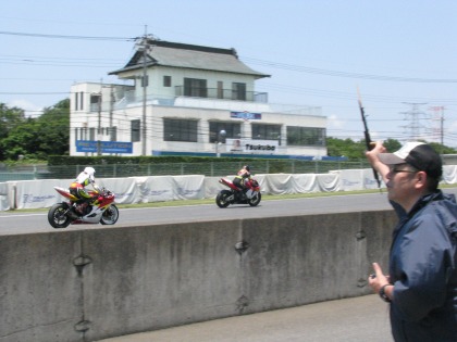 12:10 終了! TC6002ヒート目のレースが終了しました。 トップはチェッカをガッツポーズで決めたR6。 入江選手はわずかに届かず2位でチェッカー。 |
