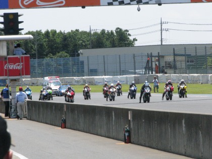 11:13 スタート進行 30分ほど遅れて、スタート進行が始まりました。 まずは、パドックからピットロードへ移動です。 |