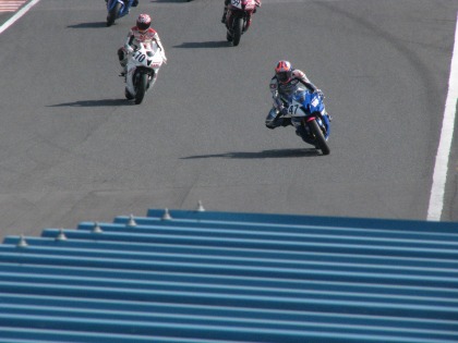 11:30 1周目を終えて 1周を終えて、3番手でホームストレートに戻ってきました。 11番グリッドで、3番手・・・2、3台グリッドが空いていましたから、5、6台は抜いた事になります。(凄げー!) |