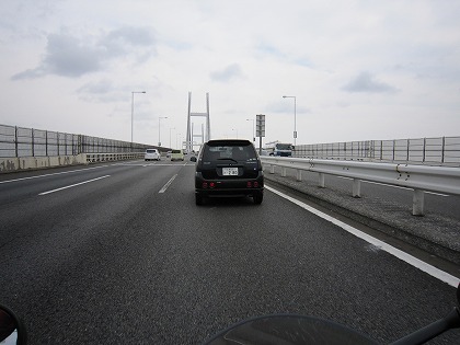 8:17 ベイブリッジ 自宅を出発して、いつものように国道16号線を北上、幸浦のインター手前のコンビニでモーニングコーヒー。 それから首都高速湾岸線に上がりました。 只今、横浜ベイブリッジを通過するところ。 やっぱり天気はイマイチ。 すぐに降り出しそうな雲ではありませんが、油断できない雲ですね。 |