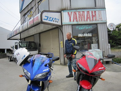 8:59 K2Yに到着 時間”ほぼ”ぴったりにK2Yに到着。 R6の蝦名くんは到着済。 アイスエイジさんは、自分と同じ、向かいのシェルでガソリンを給油中。 |