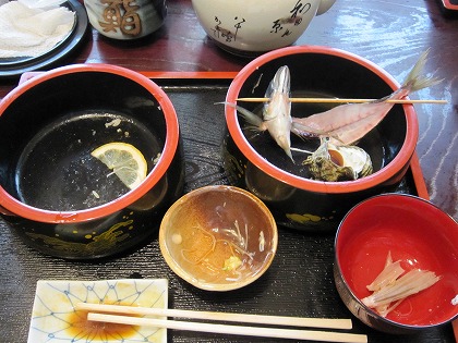 11:44 しばらく待って しばらく待って、名代XX丼が出てきました。 丼(重)は2段重ね、アラで取ったお椀がつきます。 |