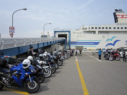 9:22 なんだかんだで 北海道フェリーの乗船の時刻も近づいてくると、なんだかんだでバイクが結構集まってきました。 6月下旬のこのシーズン、なかなか世間一般の会社は休みじゃないはずですが・・・? しかも、3、4人のグループも何組かいました。 |