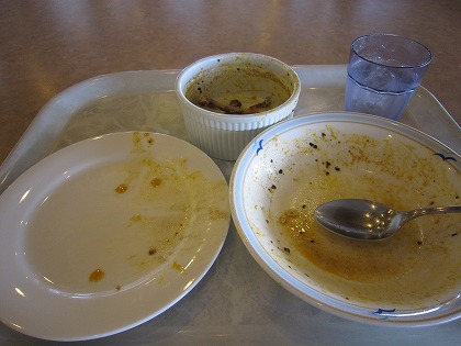 12:36 昼食 昼食はコンビニ弁当ではなく、予定を変更して、フェリーのレストランで。 レストランの夕食メニューがイマイチだったので、コンビニ弁当は夕食に決定。 昼食はスープカレー。 スープカレーは北海道発のメニューで2、3年前に流行ったような記憶がありますが、関東では既に消えましたね。(私の知る限り) それでは、『いただきます!』 決して不味くは無いんですが、粘度がほとんどないスープカレーは、食べ応え感がイマイチですね。 消えていった理由の一つはそこにあるかも。(勝手に消したら北海道の人に怒られる!) |