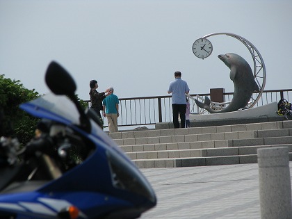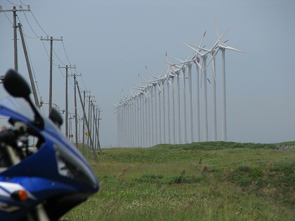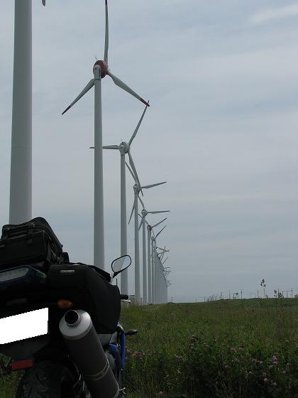 12:30 並べてみました せっかくなので、風力発電の塔の下にいって、バイクを並べてみました。 『うん〜。でかい!』 |