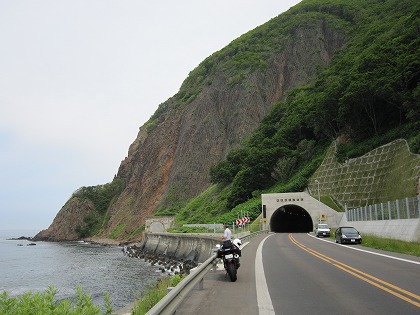 8:38 国道231号線 国道231号線は、ところどころ切り立った岩山を縫うように、日本海に沿って走ります。 この路線は片側一車線の道路で、直線と中速コーナーになる緩いカーブとが組み合わされており、バイクを軽快に走らせることができます。 また、北海道の道路の多くは、除雪時のため路側帯が広く取ってあるため、道幅が広く走りやすいことは走りやすい。 |