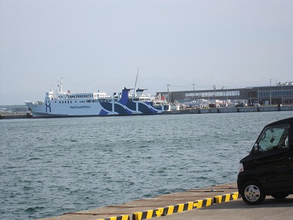14:30 利尻島・礼文島行きフェリー 北防波堤ドームの反対側、稚内港には利尻島・礼文島行きのフェリーがちょうど停泊していました。 |
