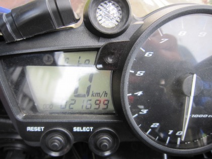 9:02 走り始め 朝食後、出発の支度をして、チェックアウト。 ホテルの駐輪場に。 今日の走り始めの距離 21,699 km。 |
