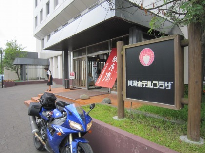 9:08 出発します。 チェックアウト後、荷造りをして、ホテルの正面玄関にバイクを停め、デジカメで撮影。 それでは、出発します。 北海道ツーリングも4日目、折り返しです。 今日は、南下して釧路に行き和商市場で昼食。 そこから、上富良野に戻ります。 後は、天気次第で、要所要所観光したり。 ホテルの人に、『曇っているから、摩周湖は無理ですよね?』と聞くと、 『下が曇っていても、風で霧が晴れることがありますから、行ってみては?』 と言われるので、行ってみることにします。 |