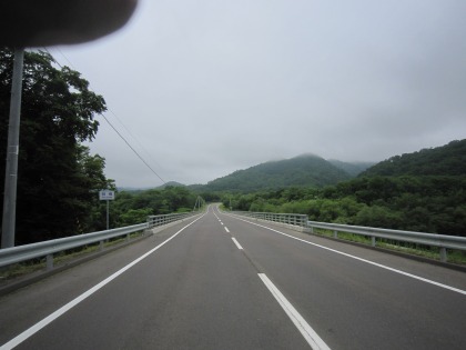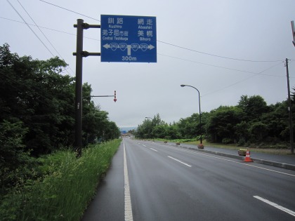 9:35 北海道道52号屈斜路摩周湖畔線 北海道道52号屈斜路摩周湖畔線を下りてきました。 ここまで下りてきても、路面はウェット状態の霧雨状態でした。 |